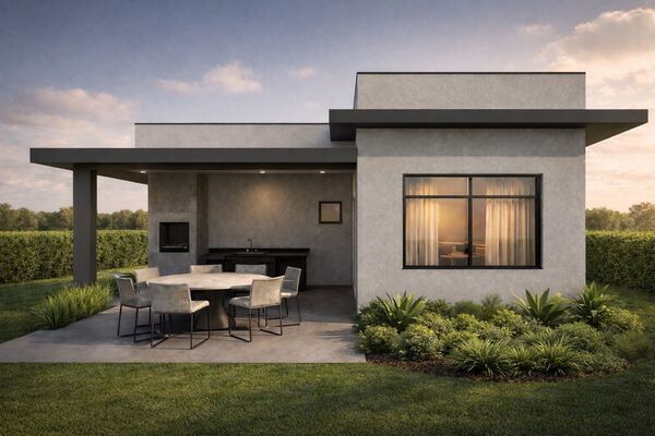 Projetar uma residência compacta que atendesse ao dia a dia e ainda tivesse potencial de valorização. O projeto precisava ser econômico, funcional e com possibilidade de expansão, permitindo transformar a cozinha conjugada em área gourmet ou edícula no futuro. O resultado foi um layout versátil, que entrega conforto hoje e potencial de crescimento amanhã.