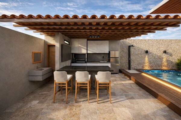 Adaptar o projeto às exigências da cliente, respeitando a fundação existente. Além disso, foi necessário reorganizar o layout para incluir uma banheira de hidromassagem e garantir a integração da área gourmet nos fundos com a piscina, mantendo funcionalidade, conforto e estética.